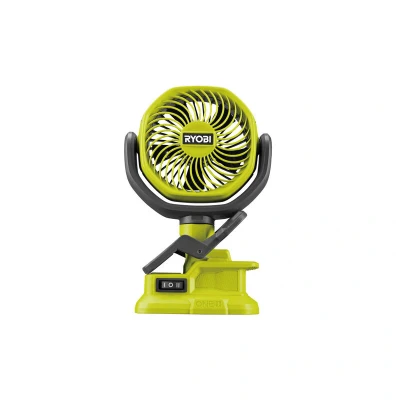 As part of the Ryobi ONE+™ system of over 150 cordless tools for the home, garden, automotive, crafting and so much more, the Ryobi 18V ONE+™ RCF18-0 10cm Clamp Fan offers a portable source of cooling air. This extremely compact and versatile ONE+™ Clamp Fan can stand or attach onto almost anything such as a desk, workbench, pram, or bike, providing you with effective cooling wherever you are. Use it around your home and garden, in your workshop as you work on your next DIY project, the great outdoors when exploring or when you are on the move. Featuring a five-blade design gives you a strong air flow when on the max setting which will help keep you cool in the hottest of conditions. The rubberized clamp helps secure the fan onto any edge up to 38mm and any round object up to 25mm and the rotatable head helps direct air where needed. Equipped with a 10cm shroud diameter also means the fan can fit in tight spaces which gives you freedom knowing that you will be able to direct air flow