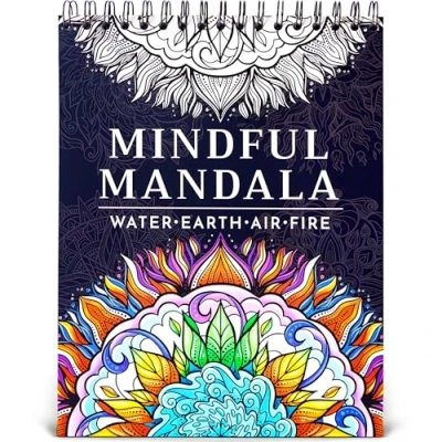 Embrace Serenity with Nature's Elements - Immerse yourself in relaxation with this Mindful Mandala Coloring Book, where each of the 50 unique designs draws inspiration from the natural elements of water, earth, air, and fire. These intricate mandalas offer a path to tranquility and mindfulness, ideal for unwinding and discovering inner peace through creative expression. Superior Paper Quality for Artistic Freedom - Enjoy a flawless coloring experience on bright white artboard paper (180gsm) that prevents bleed-through and supports various mediums. The generous 8.5” x 11” size and included blotter page ensure your artistic journey is as limitless as your imagination, enhancing mindfulness and creativity. Effortless Coloring & Sharing with Spiral Binding - Our double spiral binding design allows the book to lay flat, ensuring easy access to every inch of the page. The perforated edge invites you to smoothly tear out your artworks for display or gifting, making each piece a shareable token of your creativity and dedication to relaxation. A Meaningful Gift of Creativity and Calm - Mindful Mandala serves as a thoughtful present for anyone in your life seeking stress relief, mindfulness, or a creative outlet. It’s more than a coloring book; it's a gesture of care and an invitation to explore personal growth and happiness through the art of coloring. Deepen Your Connection to Nature and Self - As you navigate through each mandala, let the elemental themes guide your color choices and mindfulness practice. This coloring book not only promotes relaxation and stress relief but also encourages a deeper connection with the natural world and introspection, fostering a serene mind and spirit.