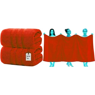 S B 2 x Super Jumbo Bath Sheets (100 200 cm) Premium 100% Egyptian Cotton Extra Large Sheet Towel Set Highly Absorbent & Quick Dry Hotel Quality Towels (Orange)