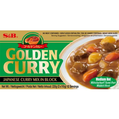 S&B Golden Curry Sauce Mix Medium Hot (220g) is a rich, moderately spicy Japanese curry roux made without meat, perfect for quick and authentic Japanese curry with meat or vegetables. Easy to use, it melts smoothly and is produced by trusted Japanese brand S&B Foods.