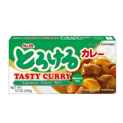 S&B Tasty Variety Pack of Japanese Pre-Mixed Quick & Easy Curry Sauce & Stew Mixes - Medium Hot Curry Sauce 200g MEDIUM HOT CURRY SAUCE 200g - This pre-mixed curry sauce mix offers a medium level of heat, ideal for those who enjoy a flavourful but not overpowering curry.