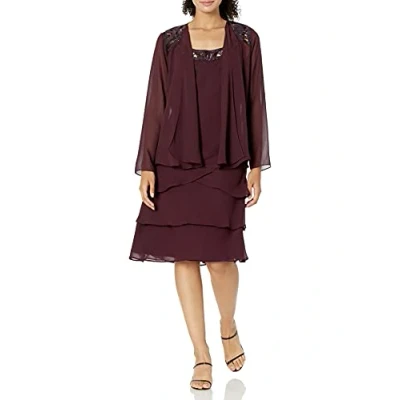 S.L. Fashions Women's Mother of The Bride Jacket Dress with Sequined Cut Out Shoulder Special Occasion, Fig, 16 Petite