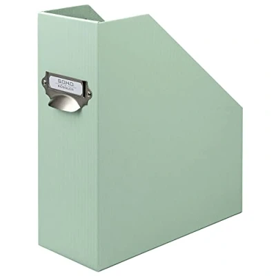 115mm magazine box Mint ribbed cover Convenient storage of magazines and papers Part of the S.O.H.O. complete office system available in a dozen colours Handmade in Europe to the highest specification