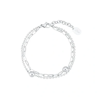 Double row ladies bracelet "Ball" by s.Oliver The jewel is made of high quality stainless steel Perfect Fit: Thanks to an extension element, the accessory is individually adjustable and thus fits ideally