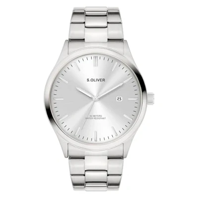 s.Oliver Men's Watch, Round, Silver, 42 mm, Metal Watch with Quartz Movement on Stainless Steel Strap Folding Clasp, Analogue 5 ATM Waterproof, Scratch Resistant