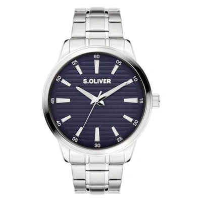 s.Oliver Men's Watch, Round, Silver, 44 mm, Metal Watch with Quartz Movement on Stainless Steel Strap Folding Clasp, Analogue 5 ATM Waterproof, Scratch Resistant