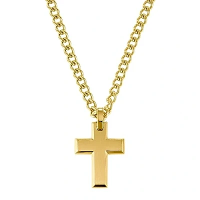 s.Oliver necklace stainless steel men's necklace, 50 cm, gold, cross, comes in jewelry gift box 2036868