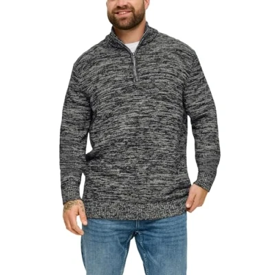 Troyer collar Long sleeves with ribbed cuffs Zip closure Flame yarn structure Fit: regular fit in oversize. For size L, the back length is 72 cm. Hem with ribbed trim