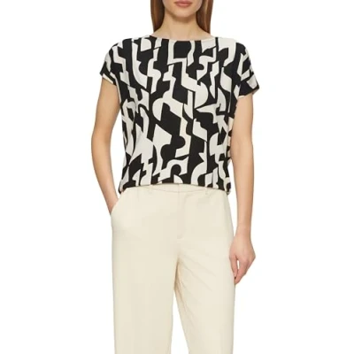 The fit is relaxed Is all-over patterned, has stripes Soft, made of jersey, in flowing quality Has a crew neck Overlapping shoulders
