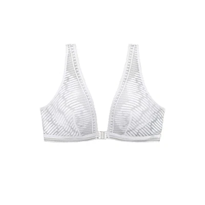 Bralette without underwire With front closure With subtly transparent, modern lace