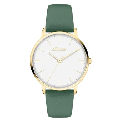 High-quality s.Oliver watch made of metal with faux leather strap and Japanese quality movement Polished metal housing, diameter 34 mm, scratch-resistant mineral glass, water resistance tested up to 3 ATM Elegant faux leather strap in green with pin buckle, length: 190 mm The s.Oliver watch collection impresses with its high quality and modern design. The s.Oliver watches are packaged in a beautiful, reusable cotton pouch.