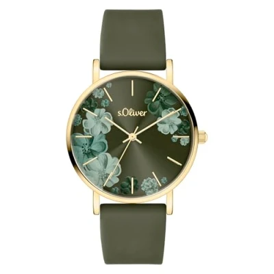 High-quality s.Oliver watch made of metal with silicone strap and Japanese quality movement Polished metal housing, diameter 36 mm, scratch-resistant mineral glass, water resistance tested up to 3 ATM Elegant silicone strap in green with pin buckle, length: 185 mm The s.Oliver watch collection impresses with its high quality and modern design. The s.Oliver watches are packaged in a beautiful, reusable cotton pouch.
