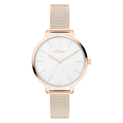 High-quality s.Oliver watch made of metal with stainless steel strap and Japanese quality movement Polished metal housing, diameter 34 mm, scratch-resistant mineral glass, water resistance tested up to 3 ATM Elegant stainless steel bracelet in rose gold with folding clasp, length: 180 mm The s.Oliver watch collection impresses with its high quality and modern design. The s.Oliver watches are packaged in a beautiful, reusable cotton pouch.