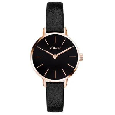 High-quality s.Oliver watch made of metal with faux leather strap and Japanese quality movement Polished metal housing, diameter 28 mm, scratch-resistant mineral glass, water resistance tested up to 3 ATM Elegant faux leather strap in black with pin buckle, length: 185 mm The s.Oliver watch collection impresses with its high quality and modern design. The s.Oliver watches are packaged in a beautiful, reusable cotton pouch.
