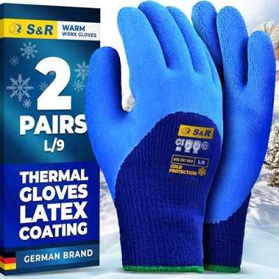S&R 2 Pairs of Thermal Protective Work Gloves with Warming Acrylic Lining, Warm Gloves, Latex Coating, Working Size (L/9), Winter