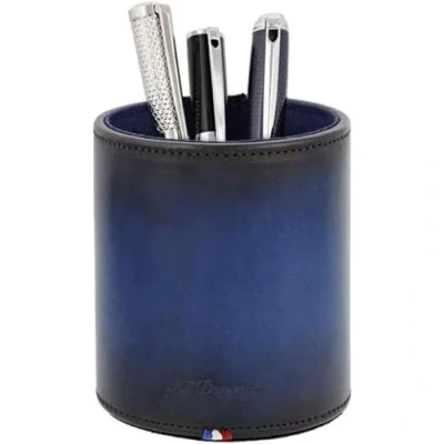S.T. Dupont's new office range has been designed to offer an ideal, organised work setting The Atelier blue leather pen pot has been crafted with a handmade patina effect, offering the perfect illustration of the Maison’s expertise The embossed S.T. Dupont logo adds the final touch This essential accessory will enhance your office space Pairs perfectly with other items in our Atelier range