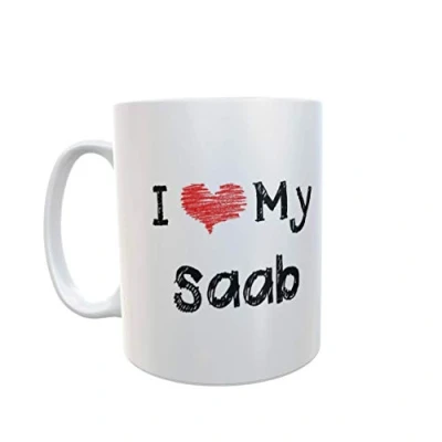 SAAB Mug Gift I Love Heart My Novelty Cute Car Owner Driver Ceramic Cup