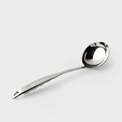 The ladle features a sleek, mirror-polished finish that not only adds a sophisticated touch to your kitchen but also facilitates easy cleaning. The smooth, high-shine surface resists grime, making it dishwasher safe for your convenience. Its elegant design means it seamlessly transitions from kitchen tool to table serving piece, making it ideal for serving soups, stews, sauces, and dressings with grace.