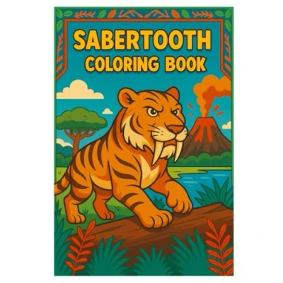 Sabertooth Coloring Book: Realistic Prehistoric Predator Scenes for Kids & Adults 50 Detailed Smilodon Line Art Pages