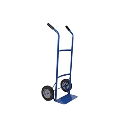 Physical properties: width platform: 35 cm, depth platform: 18 cm, number of wheels: 2, wheel diameter: 20 cm, wheel material: rubber, technical data: safety factor: 1/2, maximum load: 80 kg, working load: 40 kg, foldable: no wheel, type: fixed, rubber, solid, load capacity: 40 kg, set. Op-up Options: ** ** Height Adjustable: No * Product Basic Info: ** Colour: Blue ** Additional Colour: Black ** Material: Steel ** Width: 45 cm ** Height: 110 cm ** Depth: 28 cm ** Weight: 6.6 kg