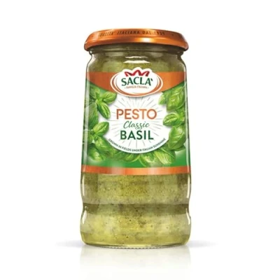 CLASSIC BASIL PESTO - Our classic basil pesto made with basil grown in the warm Italian sunshine for Italian food FINEST FRESHEST INGREDIENTS - Crafting our classic pesto from the finest, freshest ingredients, freshly-picked basil leaves with Italian cheeses and pine nuts PERFECT WITH - Perfect for pizza toppings, garlic bread, king prawn linguini and chicken tagliatelli VERSATILE - Add the flavour of Italy to your food plans, simply use it as a pasta sauce to bring your pasta to life. Add Sacla to your grocery food shopping for a fresh Italian taste AUTHENTIC - Sacla’ was born in Italy in 1939, in the Northwest of Italy. We've travelled the length and breadth of Italy to bring you the real flavours of Italy in our extensive range of the finest Italian food and drink