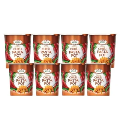 Sacla Italian Instant Pasta Pot Ready in 5 Minutes, Quick and Delicious with Perfectly Cooked Tagliatelle a Sauce Convenient Lunch, Made Italy, Fiery Chilli (Pack of 8)