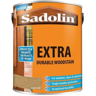 General description This Sadolin Extra Durable Woodstain in Light Oak is designed for both softwood and hardwood surfaces, excluding decking or areas subjected to heavy wear and abrasion. It is particularly effective for joinery applications such as doors and windows, offering flexible protection and water repellency for long-lasting results. Technical specifications Colour: Light Oak Size: 5 litre Coverage: Planed Softwood/Hardwood up to 15m²/litre Drying Time: Touch Dry 4-6 hours Recoat Time: 16-24 hours Number of Coats: 2 coats Usage Apply by brush For optimum durability on new wood, it is recommended to use Sadolin Classic as a base coat, especially for hardwoods. Other information Pack sizes available: 0.5 ltr, 0.75 ltr, 1 ltr, 2.5 ltr, 5 ltr