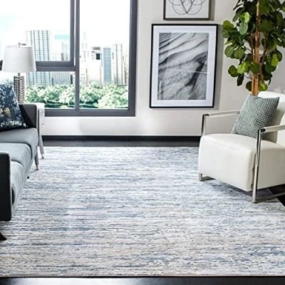 Safavieh Amelia Collection Modern Area Rug for Living Room, Dining Bedroom Rug, Short Pile, Ivory and Blue, 91 x cm