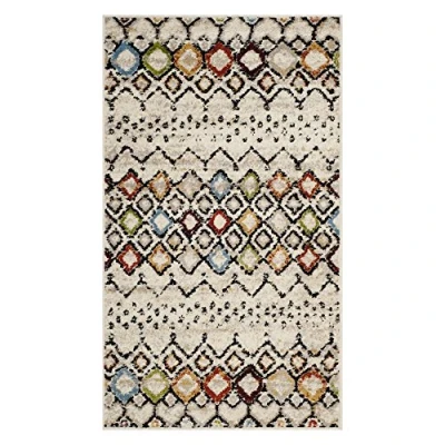 SAFAVIEH Boho Chic Rug for Living Room, Dining Bedroom Amsterdam Collection, Short Pile, in Ivory and Multi, 91 X 152 cm