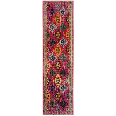 SAFAVIEH Boho Chic Rug for Living Room, Dining Bedroom Monaco Collection, Short Pile, in Fuchsia and Multi, 66 X 244 cm