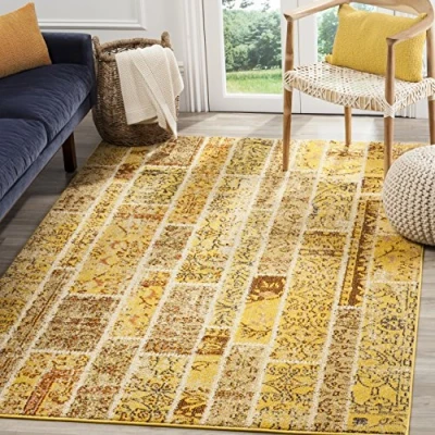 TRENDY STYLE: Boho Chic rug design from the Safavieh Monaco Collection woven in Turkey beautifully enhances any room of the home, from the living room, dining room, bedroom, home office, or entryway. Available in many colors and sizes. HIGH QUALITY & DURABLE DESIGN: Woven of Polypropylene this machine made area rug has a plush & comfortable 1.1 cm low pile and is soft underfoot. STAIN RESISTANT & FAMILY-FRIENDLY: Expertly woven from enhanced soft synthetic durable fibers that are stain resistant and non-shedding, the rug doesn't trap dirt or debris making it pet-friendly and easy to clean. Perfect for high traffic areas. EASY CARE & MAINTENANCE: Vacuum regularly and gently blot and clean stains immediately with a mild detergent or carpet cleaner, then rinse thoroughly and dry. Professional cleaning recommended for tough stains and dirt. THE BRAND: Safavieh has been a trusted brand and global leader in home & living for over 100 Years. Experts in making quality, durable, trendy designs, the brand mixes materials, colors and styles to create a collection of rugs, furniture and lights Construction Type: Power Loomed; Materials 100% Polypropylene Size: 121 X 170 cm; Colour: Yellow/Multi-Colour Vacuum regularly to prevent dust and crumbs from settling into the roots of the fibres. Avoid direct and continuous exposure to sunlight. Use rug protectors under the legs of heavy furniture to avoid flattening piles. Do not pull loose ends; clip them with scissors to remove. Turn carpet occasionally to equalize wear. Remove spills immediately. Professional cleaning is recommended.