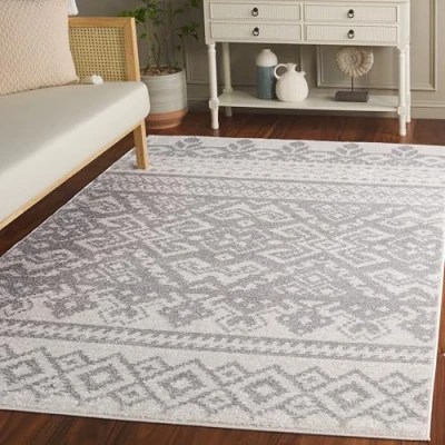 TRENDY STYLE: Boho rug design from the Safavieh Adirondack Collection woven in Turkey beautifully enhances any room of the home, from the living room, dining room, bedroom, home office, or entryway. Available in many colors and sizes. HIGH QUALITY & DURABLE DESIGN: Woven of Polypropylene this machine made area rug has a plush & comfortable 1.1 cm low pile and is soft underfoot. STAIN RESISTANT & FAMILY-FRIENDLY: Expertly woven from enhanced soft synthetic durable fibers that are stain resistant and non-shedding, the rug doesn't trap dirt or debris making it pet-friendly and easy to clean. Perfect for high traffic areas. EASY CARE & MAINTENANCE: Vacuum regularly and gently blot and clean stains immediately with a mild detergent or carpet cleaner, then rinse thoroughly and dry. Professional cleaning recommended for tough stains and dirt. THE BRAND: Safavieh has been a trusted brand and global leader in home & living for over 100 Years. Experts in making quality, durable, trendy designs, the brand mixes materials, colors and styles to create a collection of rugs, furniture and lights