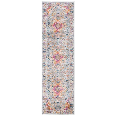 Safavieh Boho Rug for Living Room, Dining Bedroom, Madison Collection, Short Pile, in Grey and Fuchsia, 69 x 244 cm