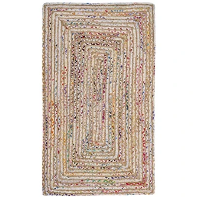 Safavieh Cape Cod Collection Accent Rug 2' x 3', Beige & Multi, Handmade Boho Braided Jute Cotton, Ideal for High Traffic Areas in Entryway, Living Room, Bedroom (CAP202B)