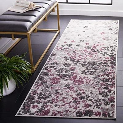 SAFAVIEH Contemporary Floral Rug for Living Room, Dining Bedroom Adirondack Collection, Short Pile, in Ivory and Purple, 76 X 244 cm