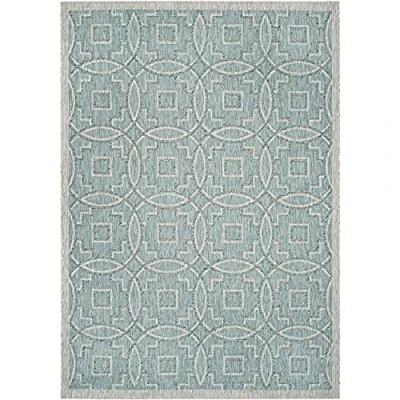SAFAVIEH Contemporary Rug for Indoor & Outdoor Courtyard Collection, Short Pile, in Aqua and Grey color, 160 X 231 cm