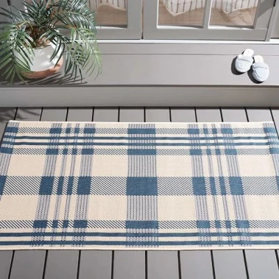 TRENDY STYLE: Contemporary rug design from the Safavieh Courtyard Collection woven in Turkey enhances any outdoor space. This durable design can also be used for kitchen, playroom, nursery or any high traffic area. Available in many colors and sizes. HIGH QUALITY & DURABLE DESIGN: Woven of 100% Polypropylene Pile / Latex Backing this machine made area rug has a plush & comfortable 0.5 cm low pile and is soft underfoot. STAIN RESISTANT & FAMILY-FRIENDLY: Expertly woven from enhanced soft synthetic durable fibers that are stain resistant and non-shedding, the rug doesn't trap dirt or debris making it pet-friendly and easy to clean. Perfect for high traffic areas. EASY CARE & MAINTENANCE: Outdoor rugs are made from fibers that are water and stain resistant and deter mildew to withstand natural weather elements. Rinse with a garden hose to remove excessive grime. Dry over a railing in the sun on both sides. THE BRAND: Safavieh has been a trusted brand and global leader in home & living for over 100 Years. Experts in making quality, durable, trendy designs, the brand mixes materials, colors and styles to create a collection of rugs, furniture and lights