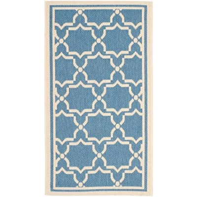 Safavieh Contemporary Rug for Indoor & Outdoor Courtyard Collection, Short Pile, in Blue and Beige color, 61 X 109 cm