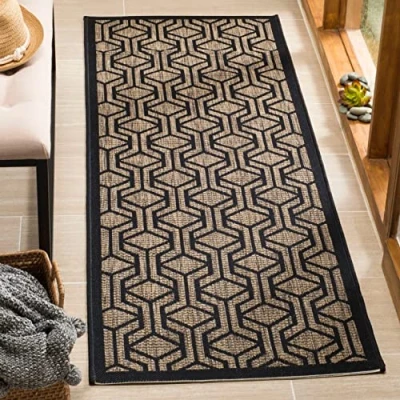 TRENDY STYLE: Contemporary rug design from the Safavieh Courtyard Collection woven in Turkey enhances any outdoor space. This durable design can also be used for kitchen, playroom, nursery or any high traffic area. Available in many colors and sizes. HIGH QUALITY & DURABLE DESIGN: Woven of 100% Polypropylene Pile / Latex Backing this machine made area rug has a plush & comfortable 0.5 cm low pile and is soft underfoot. STAIN RESISTANT & FAMILY-FRIENDLY: Expertly woven from enhanced soft synthetic durable fibers that are stain resistant and non-shedding, the rug doesn't trap dirt or debris making it pet-friendly and easy to clean. Perfect for high traffic areas. EASY CARE & MAINTENANCE: Outdoor rugs are made from fibers that are water and stain resistant and deter mildew to withstand natural weather elements. Rinse with a garden hose to remove excessive grime. Dry over a railing in the sun on both sides. THE BRAND: Safavieh has been a trusted brand and global leader in home & living for over 100 Years. Experts in making quality, durable, trendy designs, the brand mixes materials, colors and styles to create a collection of rugs, furniture and lights Construction Type: Power Loomed; Material: Polypropylene Size: 68 X 200 cm; Colour: Brown / Black Vacuum regularly to prevent dust and crumbs from settling into the roots of the fibres. Avoid direct and continuous exposure to sunlight. Use rug protectors under the legs of heavy furniture to avoid flattening piles. Do not pull loose ends; clip them with scissors to remove. Turn carpet occasionally to equalize wear. Remove spills immediately. Professional cleaning is recommended.