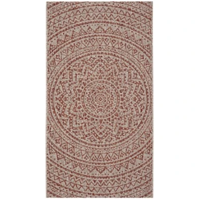 SAFAVIEH Contemporary Rug for Indoor & Outdoor Courtyard Collection, Short Pile, in Light Beige and Terracotta color, 79 X 152 cm