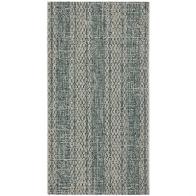 SAFAVIEH Contemporary Rug for Indoor & Outdoor Courtyard Collection, Short Pile, in Light Grey and Teal color, 79 X 152 cm