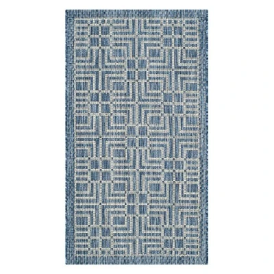 SAFAVIEH Contemporary Rug for Indoor & Outdoor Courtyard Collection, Short Pile, in Navy and Grey color, 79 X 152 cm