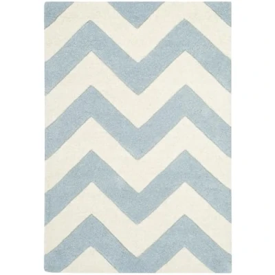 TRENDY STYLE: Contemporary rug design from the Safavieh Chatham Collection hand tufted in India beautifully enhances any room of the home, from the living room, dining room, bedroom, home office, or entryway. Available in many colors and sizes. HIGH QUALITY & DURABLE DESIGN: Woven of 100% Wool Pile this hand tufted area rug has a plush & comfortable 1.2 cm medium pile and is soft underfoot. STAIN RESISTANT & FAMILY-FRIENDLY: Beautifully hand tufted from artisans of the highest quality, soft and dense wool, this carpet is comfortable underfoot. Given the nature of the fibers, this rug is less susceptible to stains. EASY CARE & MAINTENANCE: Vacuum regularly and gently blot and clean stains immediately with a mild detergent or carpet cleaner, then rinse thoroughly and dry. Professional cleaning recommended for tough stains and dirt. THE BRAND: Safavieh has been a trusted brand and global leader in home & living for over 100 Years. Experts in making quality, durable, trendy designs, the brand mixes materials, colors and styles to create a collection of rugs, furniture and lights Construction Type: Hand Tufted; Materials 100% Wool Size: 60 X 91 cm; Colour: Blue / Ivory Vacuum regularly to prevent dust and crumbs from settling into the roots of the fibres. Avoid direct and continuous exposure to sunlight. Use rug protectors under the legs of heavy furniture to avoid flattening piles. Do not pull loose ends; clip them with scissors to remove. Turn carpet occasionally to equalize wear. Remove spills immediately. Professional cleaning is recommended.