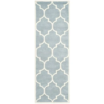 TRENDY STYLE: Contemporary rug design from the Safavieh Chatham Collection hand tufted in India beautifully enhances any room of the home, from the living room, dining room, bedroom, home office, or entryway. Available in many colors and sizes. HIGH QUALITY & DURABLE DESIGN: Woven of 100% Wool Pile this hand tufted area rug has a plush & comfortable 1.2 cm medium pile and is soft underfoot. STAIN RESISTANT & FAMILY-FRIENDLY: Beautifully hand tufted from artisans of the highest quality, soft and dense wool, this carpet is comfortable underfoot. Given the nature of the fibers, this rug is less susceptible to stains. EASY CARE & MAINTENANCE: Vacuum regularly and gently blot and clean stains immediately with a mild detergent or carpet cleaner, then rinse thoroughly and dry. Professional cleaning recommended for tough stains and dirt. THE BRAND: Safavieh has been a trusted brand and global leader in home & living for over 100 Years. Experts in making quality, durable, trendy designs, the brand mixes materials, colors and styles to create a collection of rugs, furniture and lights Construction Type: Hand Tufted; Materials 100% Wool Size: 68 X 213 cm; Colour: Blue / Ivory Vacuum regularly to prevent dust and crumbs from settling into the roots of the fibres. Avoid direct and continuous exposure to sunlight. Use rug protectors under the legs of heavy furniture to avoid flattening piles. Do not pull loose ends; clip them with scissors to remove. Turn carpet occasionally to equalize wear. Remove spills immediately. Professional cleaning is recommended.