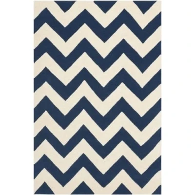 SAFAVIEH Contemporary Rug for Living Room, Dining Bedroom Chatham Collection, Short Pile, in Dark Blue and Ivory, 91 X 152 cm