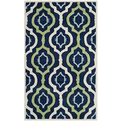SAFAVIEH Contemporary Rug for Living Room, Dining Bedroom Chatham Collection, Short Pile, in Dark Blue and Multi, 91 X 152 cm