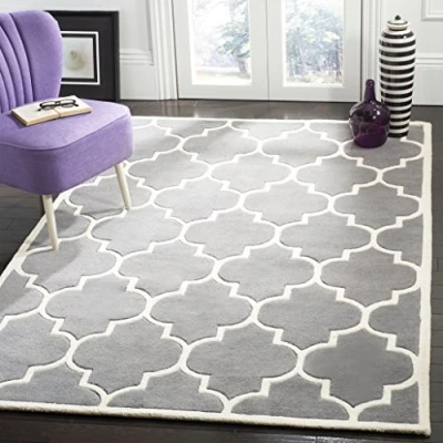 TRENDY STYLE: Contemporary rug design from the Safavieh Chatham Collection hand tufted in India beautifully enhances any room of the home, from the living room, dining room, bedroom, home office, or entryway. Available in many colors and sizes. HIGH QUALITY & DURABLE DESIGN: Woven of 100% Wool Pile this hand tufted area rug has a plush & comfortable 1.2 cm medium pile and is soft underfoot. STAIN RESISTANT & FAMILY-FRIENDLY: Beautifully hand tufted from artisans of the highest quality, soft and dense wool, this carpet is comfortable underfoot. Given the nature of the fibers, this rug is less susceptible to stains. EASY CARE & MAINTENANCE: Vacuum regularly and gently blot and clean stains immediately with a mild detergent or carpet cleaner, then rinse thoroughly and dry. Professional cleaning recommended for tough stains and dirt. THE BRAND: Safavieh has been a trusted brand and global leader in home & living for over 100 Years. Experts in making quality, durable, trendy designs, the brand mixes materials, colors and styles to create a collection of rugs, furniture and lights Construction Type: Hand Tufted; Materials 100% Wool Size: 152 X 243 cm; Colour: Dark Grey / Ivory Vacuum regularly to prevent dust and crumbs from settling into the roots of the fibres. Avoid direct and continuous exposure to sunlight. Use rug protectors under the legs of heavy furniture to avoid flattening piles. Do not pull loose ends; clip them with scissors to remove. Turn carpet occasionally to equalize wear. Remove spills immediately. Professional cleaning is recommended.