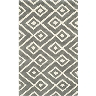 SAFAVIEH Contemporary Rug for Living Room, Dining Bedroom Chatham Collection, Short Pile, in Dark Grey and Ivory, 61 X 91 cm