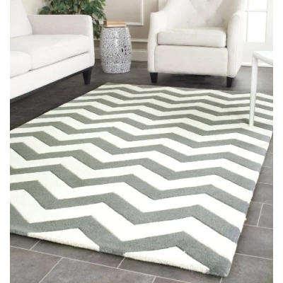 TRENDY STYLE: Contemporary rug design from the Safavieh Chatham Collection hand tufted in India beautifully enhances any room of the home, from the living room, dining room, bedroom, home office, or entryway. Available in many colors and sizes. HIGH QUALITY & DURABLE DESIGN: Woven of 100% Wool Pile this hand tufted area rug has a plush & comfortable 1.2 cm medium pile and is soft underfoot. STAIN RESISTANT & FAMILY-FRIENDLY: Beautifully hand tufted from artisans of the highest quality, soft and dense wool, this carpet is comfortable underfoot. Given the nature of the fibers, this rug is less susceptible to stains. EASY CARE & MAINTENANCE: Vacuum regularly and gently blot and clean stains immediately with a mild detergent or carpet cleaner, then rinse thoroughly and dry. Professional cleaning recommended for tough stains and dirt. THE BRAND: Safavieh has been a trusted brand and global leader in home & living for over 100 Years. Experts in making quality, durable, trendy designs, the brand mixes materials, colors and styles to create a collection of rugs, furniture and lights Construction Type: Hand Tufted; Materials 100% Wool Size: 91 X 152 cm; Colour: Dark Grey / Ivory Vacuum regularly to prevent dust and crumbs from settling into the roots of the fibres. Avoid direct and continuous exposure to sunlight. Use rug protectors under the legs of heavy furniture to avoid flattening piles. Do not pull loose ends; clip them with scissors to remove. Turn carpet occasionally to equalize wear. Remove spills immediately. Professional cleaning is recommended.