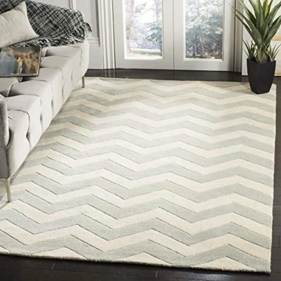 TRENDY STYLE: Contemporary rug design from the Safavieh Chatham Collection hand tufted in India beautifully enhances any room of the home, from the living room, dining room, bedroom, home office, or entryway. Available in many colors and sizes. HIGH QUALITY & DURABLE DESIGN: Woven of 100% Wool Pile this hand tufted area rug has a plush & comfortable 1.2 cm medium pile and is soft underfoot. STAIN RESISTANT & FAMILY-FRIENDLY: Beautifully hand tufted from artisans of the highest quality, soft and dense wool, this carpet is comfortable underfoot. Given the nature of the fibers, this rug is less susceptible to stains. EASY CARE & MAINTENANCE: Vacuum regularly and gently blot and clean stains immediately with a mild detergent or carpet cleaner, then rinse thoroughly and dry. Professional cleaning recommended for tough stains and dirt. THE BRAND: Safavieh has been a trusted brand and global leader in home & living for over 100 Years. Experts in making quality, durable, trendy designs, the brand mixes materials, colors and styles to create a collection of rugs, furniture and lights Construction Type: Hand Tufted; Materials 100% Wool Size: 152 X 243 cm; Colour: Grey / Ivory Vacuum regularly to prevent dust and crumbs from settling into the roots of the fibres. Avoid direct and continuous exposure to sunlight. Use rug protectors under the legs of heavy furniture to avoid flattening piles. Do not pull loose ends; clip them with scissors to remove. Turn carpet occasionally to equalize wear. Remove spills immediately. Professional cleaning is recommended.